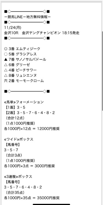 KEIBA LINEの無料予想浦和11R