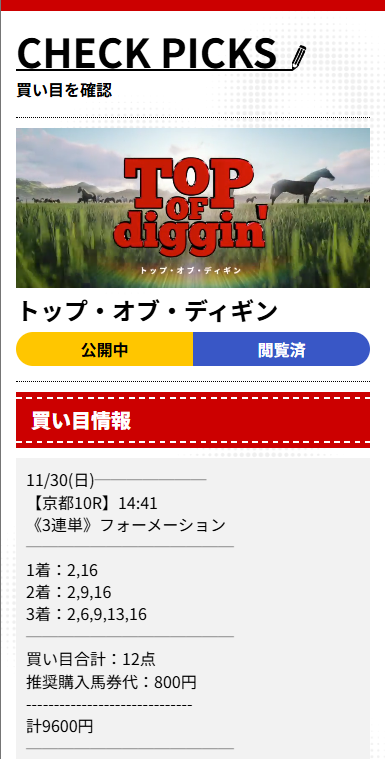 今年、無料予想の買い目を任せたのはディギン競馬