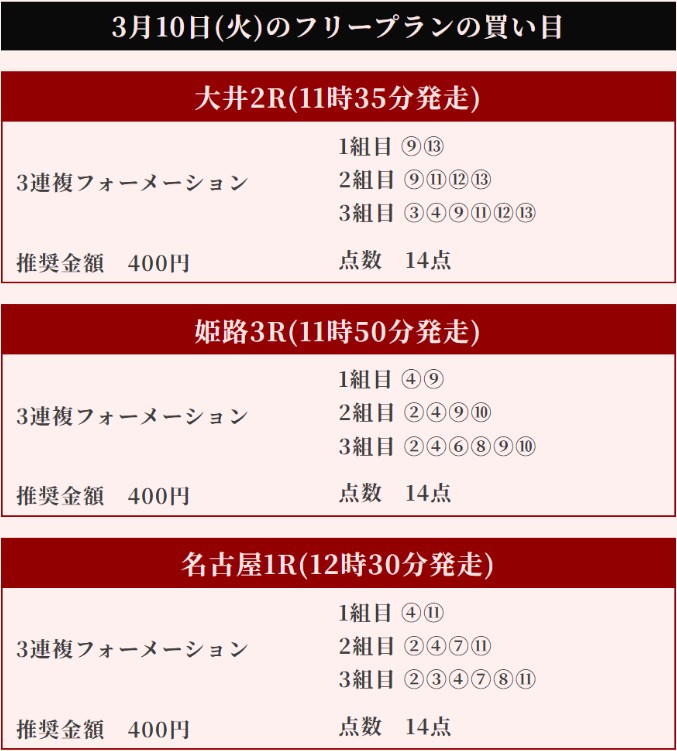 3月1日(日)の買い目画像を貼っておきますね!