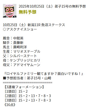 予想してる時間は無かったので俺の競馬予想の無料予想で勝負!